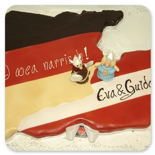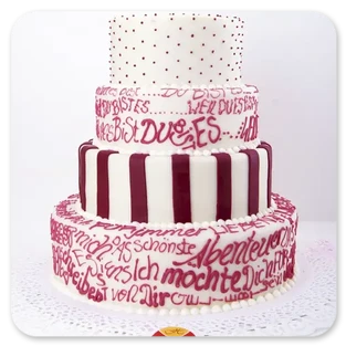 Tortengeschmack wählbar. Ebenso Farbe des Überzugs oder Schokoladenglasur. Marzipan oder nicht? Für Marzipanverweigerer verwenden wir unsere selbst hergestellte Dekormasse die nach Vanille schmeckt. Die Torte beschriften wir nach Ihren Wünschen. Der Preis richtet sich nach den Portionen und der Preiskategorie. Fotos von Ihren Ideen oder Vorlagen kann man im Bestell- oder Anfrageformular als jpg. RGB Datei uploaden.